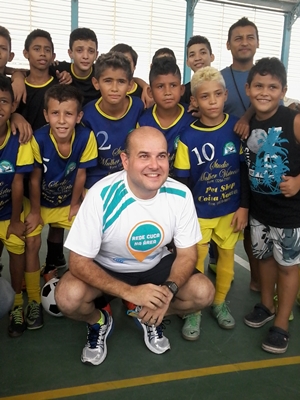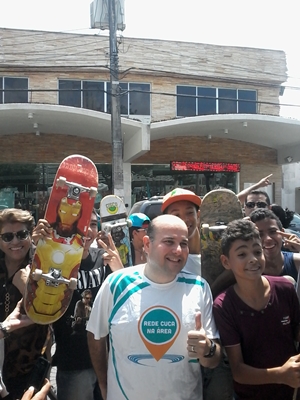 O prefeito participou ainda da entrega de troféus no campeonato que estava sendo realizado na quadra da praça da Juventude. Houve ainda sorteios de skates com kit's de segurança e bolas de futebol.